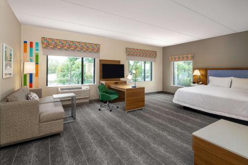 Located 3.5 miles from North Carolina General Assembly, Hampton Inn & Suites Raleigh Midtown, NC offers 3-star accommodations in Raleigh and features a seasonal outdoor swimming pool, a fitness center and a bar. The property is around 3.5 miles from State Capitol, 3.6 miles from North Carolina Museum of History and 3.9 miles from Museum of Natural Sciences. The property provides a 24-hour front desk as well as free WiFi throughout the property. Guest rooms will provide guests with a fridge. A buffet breakfast is available at the hotel. Crabtree Valley Mall Shopping Center is 4.5 miles from Hampton Inn & Suites Raleigh Midtown, NC, while North Carolina Museum of Art is 6.9 miles away. Raleigh-Durham International Airport is 12 miles from the property.