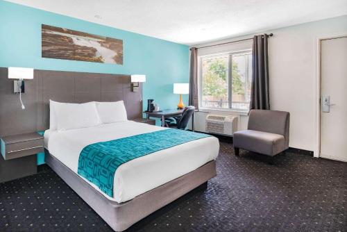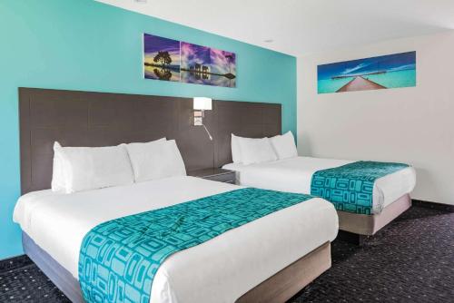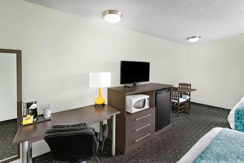 No shower rails/ I was there since Monday at 5:30 PM 29th of September 2025. They are a part of Wyndham and yet there are no railings in the shower. Therefore I couldn’t have a shower. I arrived Monday, 29th of September stayed until Wednesday 7 AM without a shower upon arriving at the hotel. I took a spin around the building when I specifically ask the question in an email to the motel stating please no stairs I cannot do them upon arriving at the motel, I took a drive around. There are no rooms without at least one step most of them have two and three steps to get up to the level of the room and then there is a 10 inch step to enter the room when I address this with the front desk clerk, I was told I don’t want any attitude. I can refund your money and you can go elsewhere. Well I just drove for 5 1/2 hours to do the boat castle the next day and was tired travelling with a service dog.