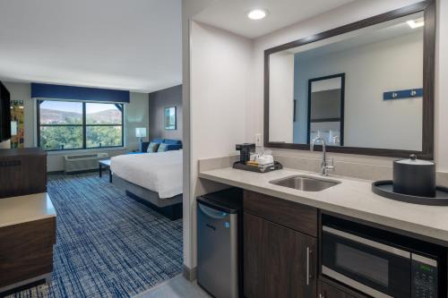 Rooms were roomy and convenient. Parking was also convenient. Perfect location for traveling around the area.