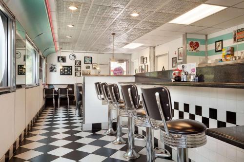 This hotel is connected with the diner on the property. You check in there. The woman checking us in was so rude! Total lack of customer service. I had completed online check-in and she made me sign things all over again, was not apologetic.