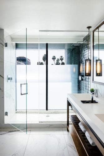 Modern and clean. Nice bathroom