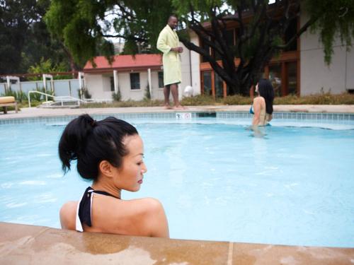 The location is 15-20 minutes from Sausalito, so if you are feeling lazy, you have to eat at the restaurants on site. The food is good, but pricey.
