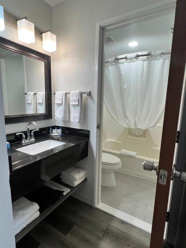 Location was good and parking was available. We had a problem with our tv and the front desk employee was very helpful in getting us a new room when he couldn’t resolve the problem. Chocolate candy was available at the front desk and breakfast was good. Fresh fruit would have made it even better.