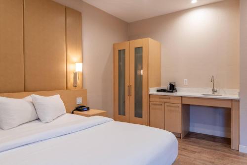 The hotel was in a good location for our travel destination and offered pet friendly accommodations. The room is large and clean. King bed was comfy but a bit soft for us.