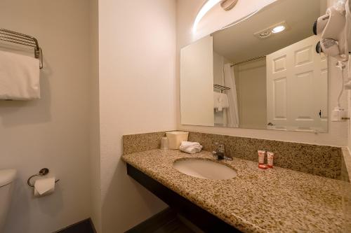 This was one of the worst motel stays I’ve ever had. The room reeked of stale smoke and some other mystery fumes. There was a burn/tear in the linoleum right in the middle of the floor, and a dirty footprint on the back of the bathroom door. The beds looked so questionable that we went out and bought our own bedding and pillows just to feel comfortable sleeping on top of them.