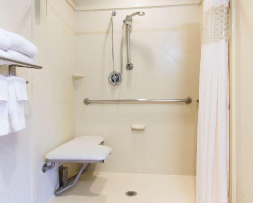 The shower door was broken and the desk chair was stained