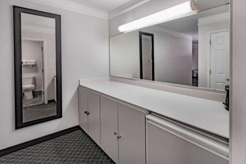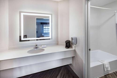 The place did not seem safe with people hanging outside their rooms even though it was not a hot night and the AC worked fine. I feltr like I was being observed the whole time. The door`s hardware looked like it had been tampered with in the past and the tub and bathroom hardware looked dirty. Not at all what I would expect from a Wyndham chain hotel and even for a La Quinta it was disappointing.