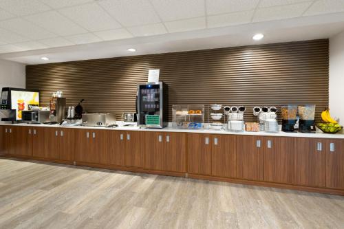 Well the breakfast was put out and juices from machine was watered down you could barely tell it was orange juice or apple juice. Plus when I went to get milk it was soured and I told daytime desk clerk he should change it, he rinsed it and placed more milk in, but seeing that not many things had dates on them, like when they were prepared, I chose to get breakfast somewhere else. Housekeeping was great, very clean rooms but looks like walls in bathroom and outside hallway need attention with just regular repair. Chipped paint, our door you could see the light coming through a 1/4 gap. Elevator needs cleaning due to tracking of water from pool and customers putting nasty stuff in the roof panel. I know this could be better. Because it was, and there is a great Manager there in Steph. Dont know the man that was there the next day but was told by other customer it was the possible owner or site manager.