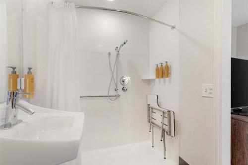 The bathroom with shower needs a bar to hold onto. The ice machine in freezer didn't work.