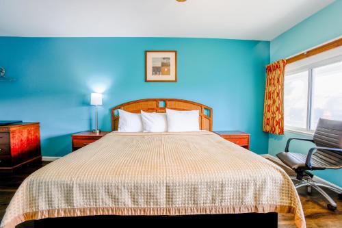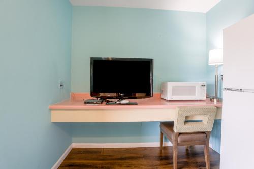 No front desk. Had to call and wait for the guy to return. Felt like a hassle. TV didn't work..Had flies smelled bad. Was not sure if it was clean . The shower knobs were the opposite. Door frame was cracked like it got kicked in. No one to give receipt when leaving.